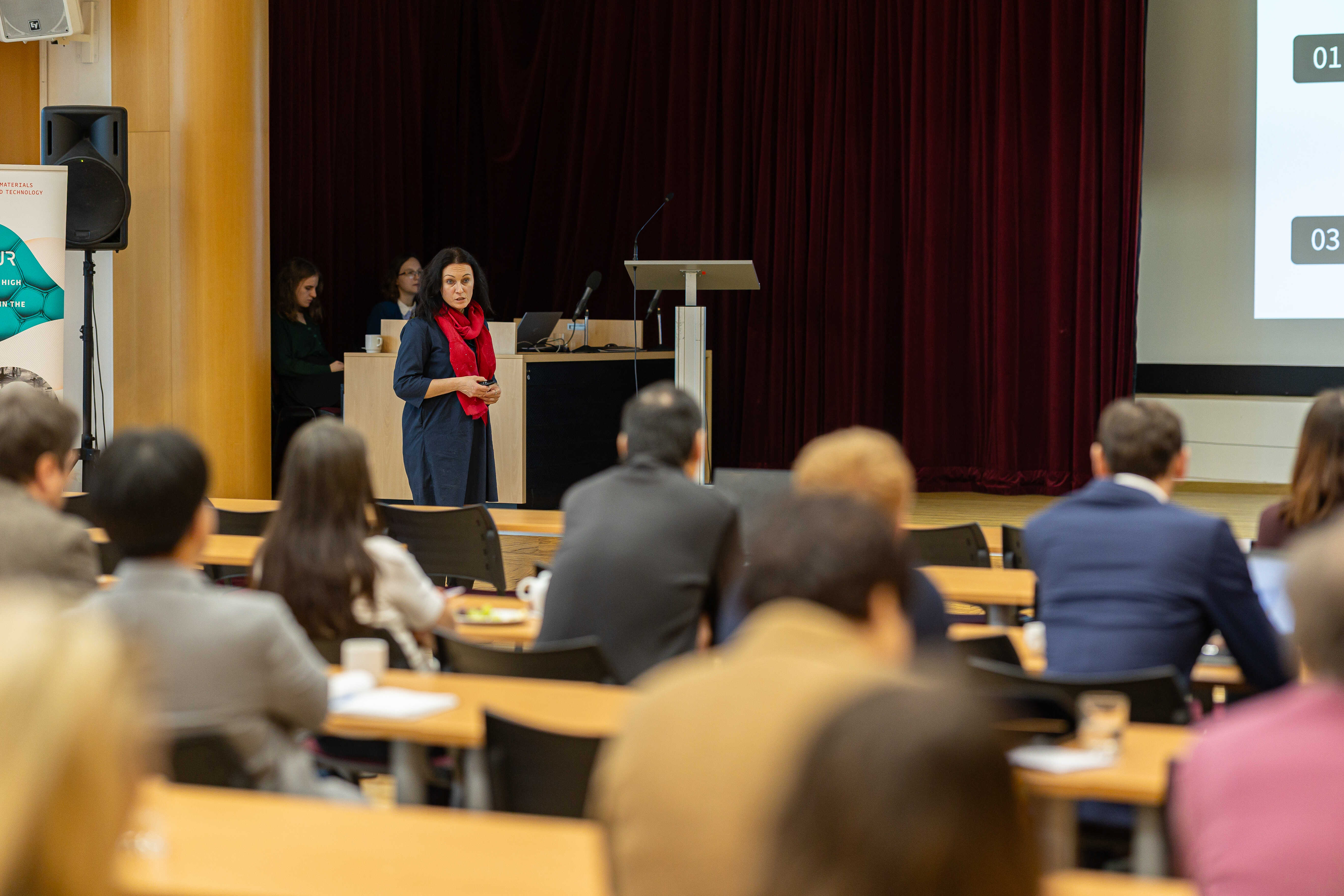 Mezi vystupujícími byla také Maria Zdończyk, která prezentovala výzkum responzivních hybridních materiálů navržených tak, aby fungovaly v podmínkách relevantních pro energetiku a zároveň aktivně reagovaly na své prostředí. „Hlavním tématem mé přednášky bylo využití opracování elektronovým paprskem k lokálnímu ladění funkčnosti materiálů. Tato metoda umožňuje vytvářet strukturované a vícestavové optické odezvy bez nutnosti složitých výrobních postupů. Tato práce úzce souvisí s probíhajícím výzkumem v laboratoři E-BEAM, kde jsou technologie elektronového svazku zkoumány jako všestranné nástroje pro pokročilé zpracování materiálů a funkční design,“ upřesnila Maria Zdończyk.